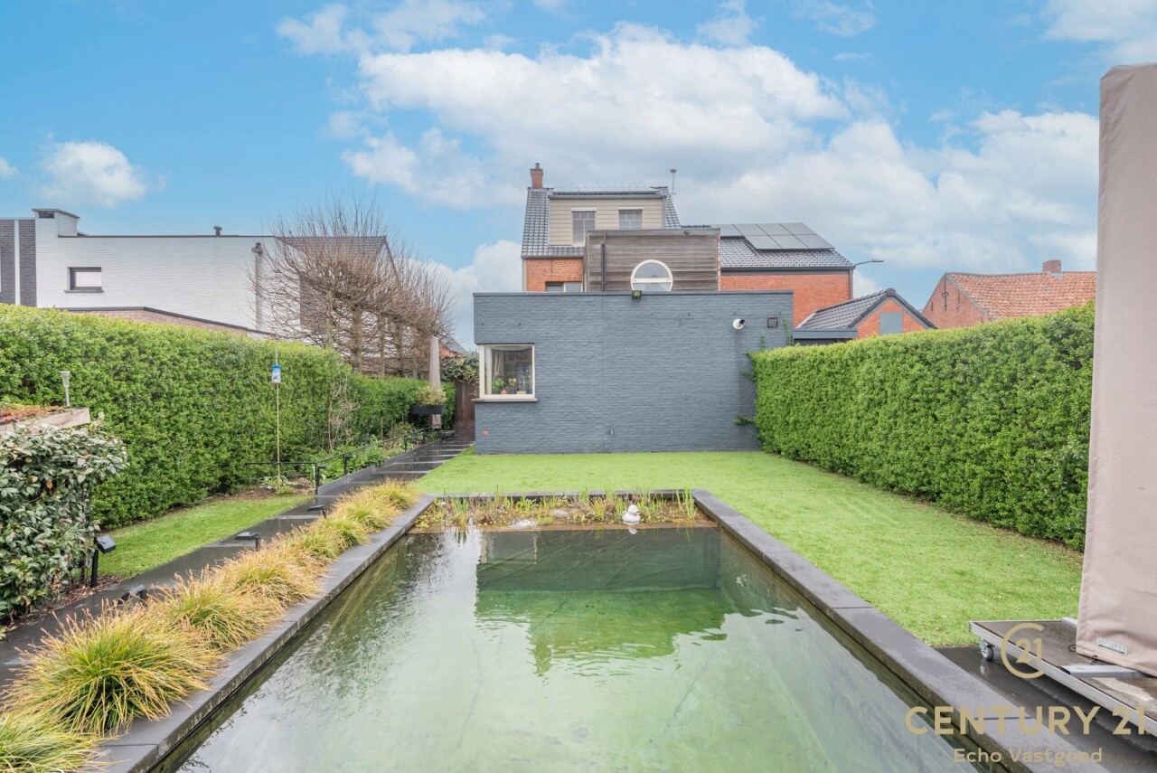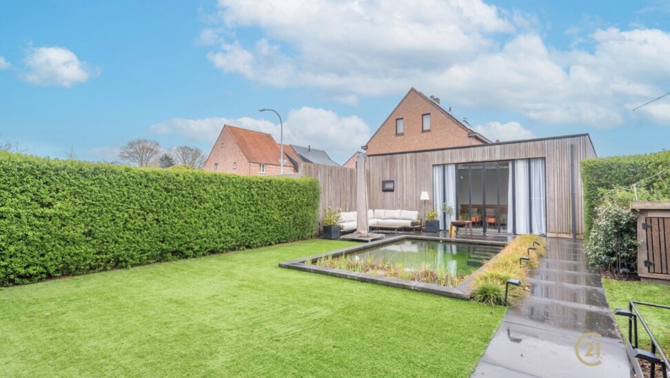 Outside, you will find a pleasant terrace, a beautifully landscaped garden with a swimming pond and a garage. There is also a multifunctional garden shed with a living area, shower, washbasin and toilet.