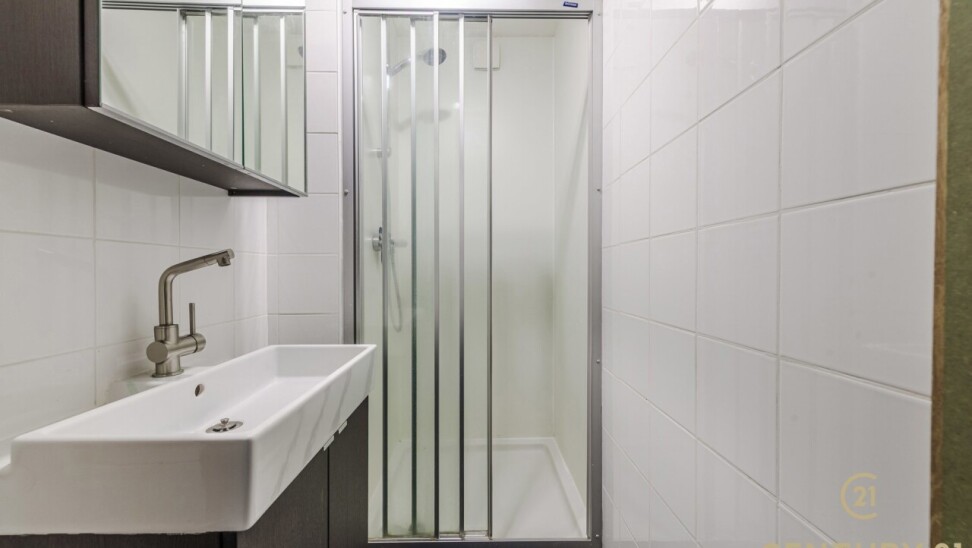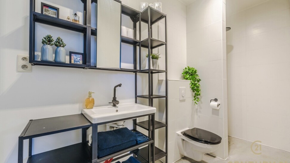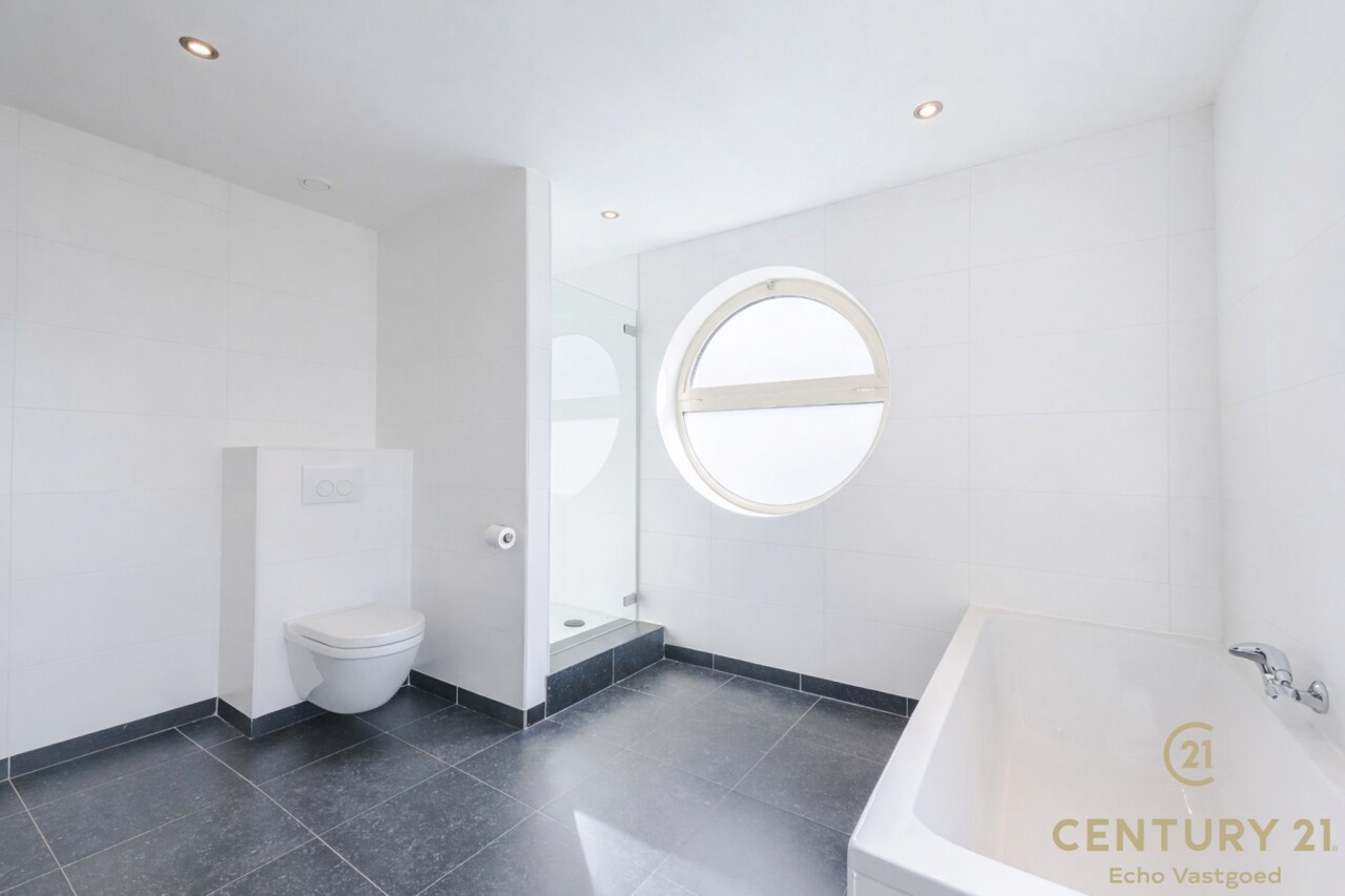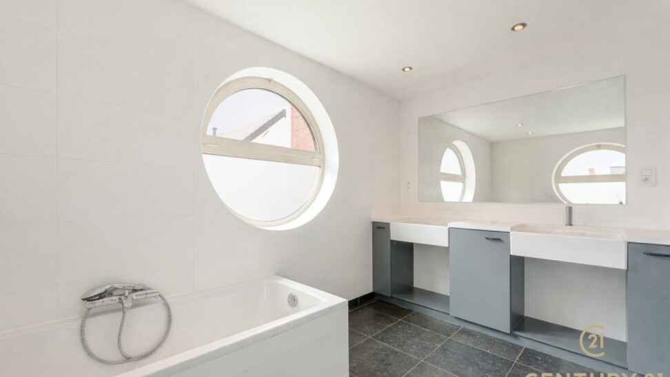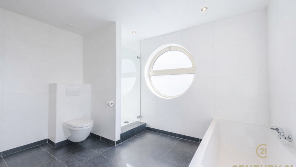 On the mezzanine level, you will find a modern bathroom equipped with a shower, bath, double washbasin and toilet, fitted with underfloor heating for added comfort.