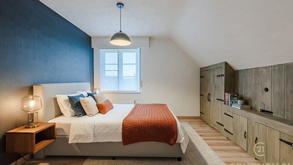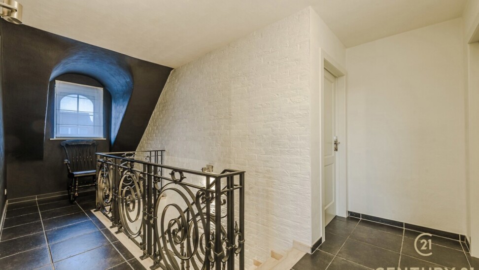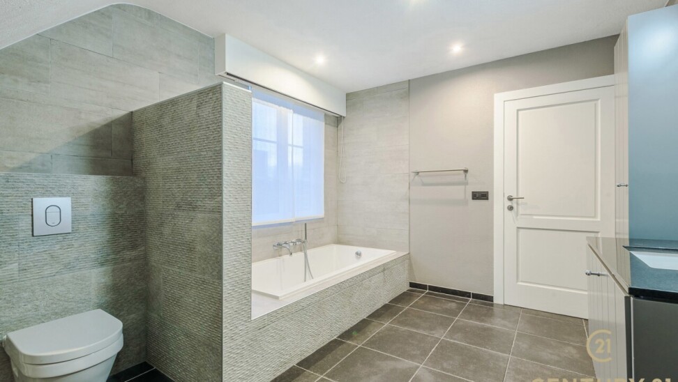 From the elegant marble staircase in the entrance hall, you reach the first-floor landing, providing access to three well-proportioned bedrooms and a fully tiled bathroom, equipped with a bathtub, toilet, and stylish vanity with sink. The attic is accessible via a ceiling hatch and offers additional storage space.