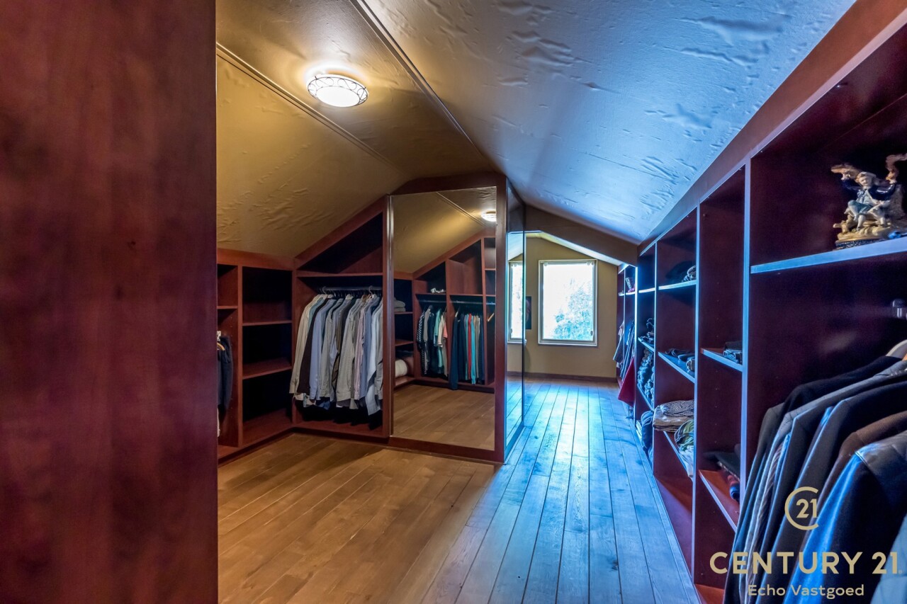 De bijzonder ruime hoofdslaapkamer kijkt uit op de achtertuin en het zwembad en beschikt over een ensuite badkamer met ligbad, wastafel in meubel en een eigen toilet. De praktische bergruimte geeft via een afsluitbare schuifraam toegang tot het overdekte terras en de tuin.