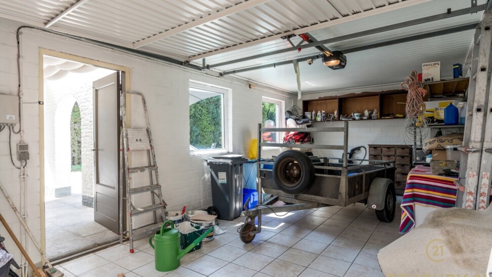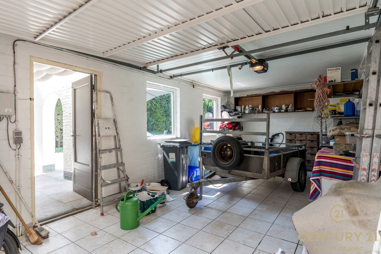 De volledig omheinde tuin garandeert optimale privacy en wordt vervolledigd door een gezellig barretje, een ruime garage en een automatisch bedienbare toegangs- en garagepoort.