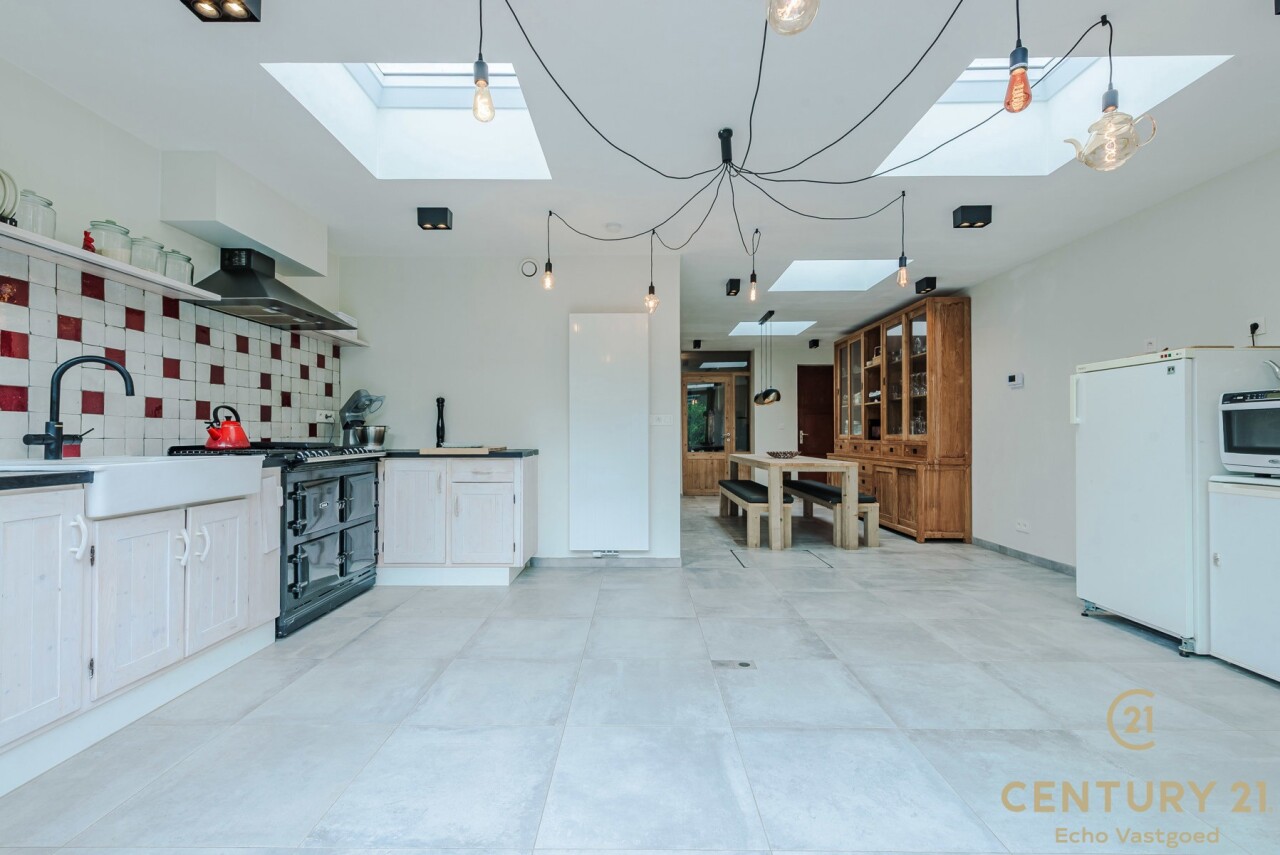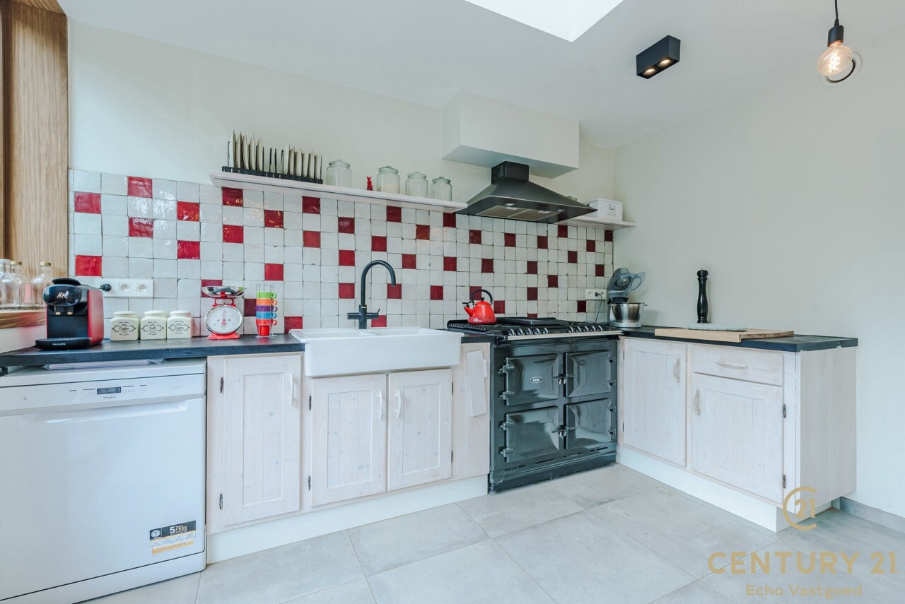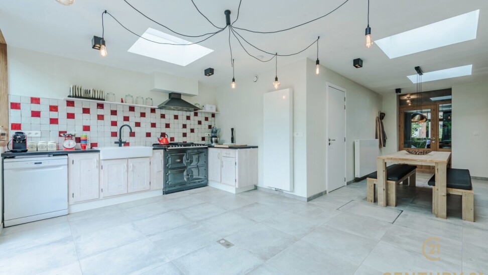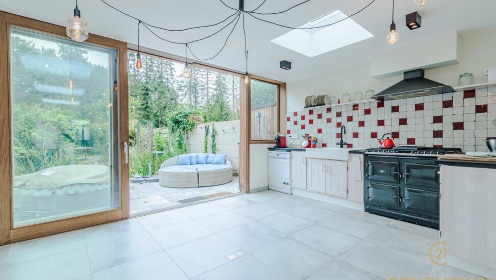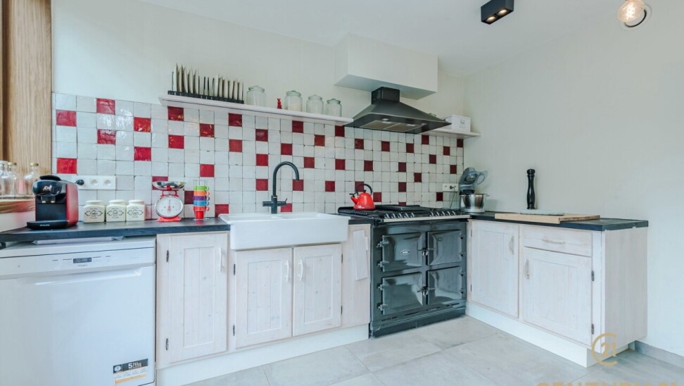 De keuken is een echte eyecatcher, met een stijlvolle afwerking en een indrukwekkend AGA-fornuis – voor kenners hét neusje van de zalm onder de fornuizen. Vanuit de keuken brengt een grote schuifraam u naar de ruime tuin, die uitnodigt voor gezellige tuinfeesten en beschikt over praktische bergruimtes achteraan. Bent u iemand met groene vingers? Dan is dit de plek om uw eigen groene paradijs te creëren!