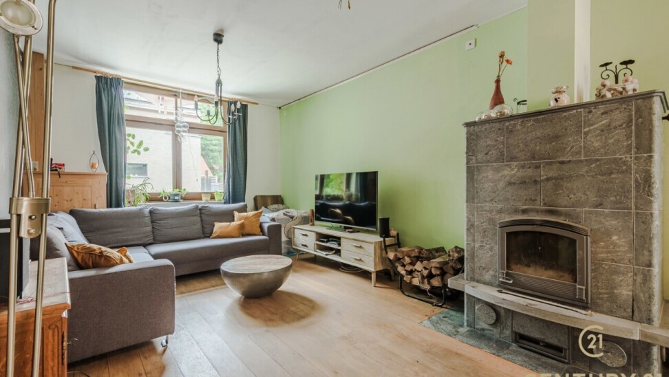 Bij het betreden van de woning wordt u verwelkomd in een authentieke inkomhal met originele tegelvloer en prachtige houten deuren. De woonkamer, voorzien van een warme houten vloer en een sfeervolle speksteenkachel, nodigt uit tot gezellige avonden in huiselijke sfeer.