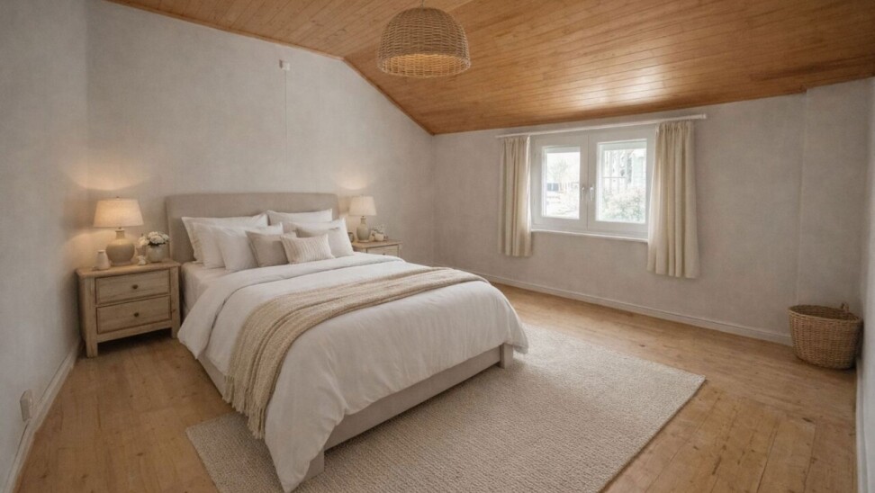 Op de verdieping bevinden zich twee ruime slaapkamers. De zeer grote zolderruimte biedt bovendien tal van mogelijkheden voor wie extra slaapkamers of een hobbyruimte wenst te creëren. Met een vaste trap en verdere afwerking transformeert u deze ruimte tot een volwaardig deel van de woning.