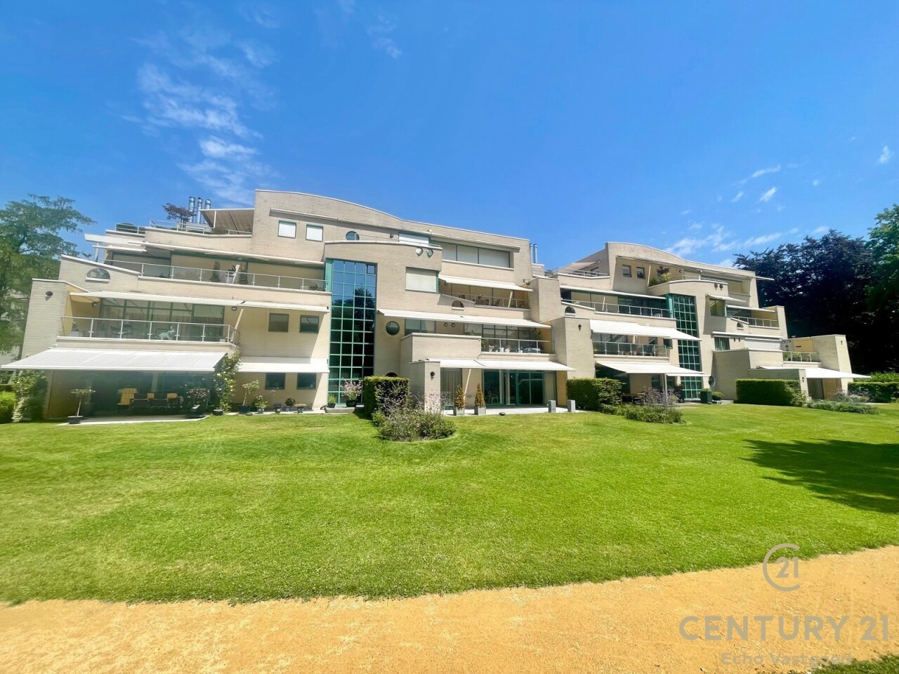 Exclusief gelijkvloers appartement in het prestigieuze parkdomein Residentie “De Dennen”, waar rust, luxe en natuur harmonieus samenkomen. Via de statige inkom aan de Steenweg op Mol rijdt u langs prachtig aangelegde wandelpaden en sfeervolle vijverpartijen, tot u het stijlvolle gebouw bereikt. Het appartement bevindt zich aan de rustige parkzijde en biedt vanuit de lichtrijke woonkamer en het royale, zuidwestgerichte terras een panoramisch uitzicht op het groen.