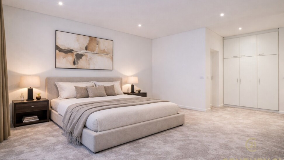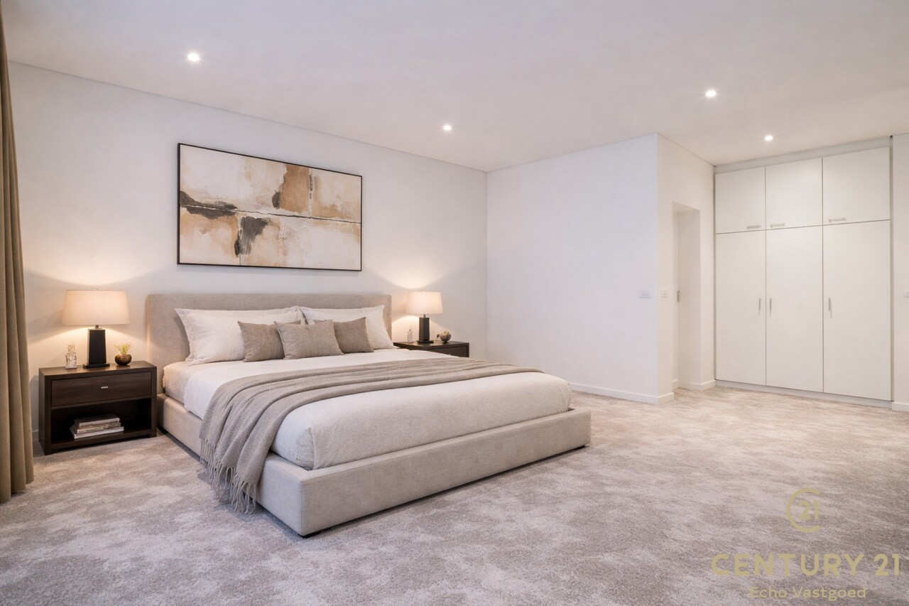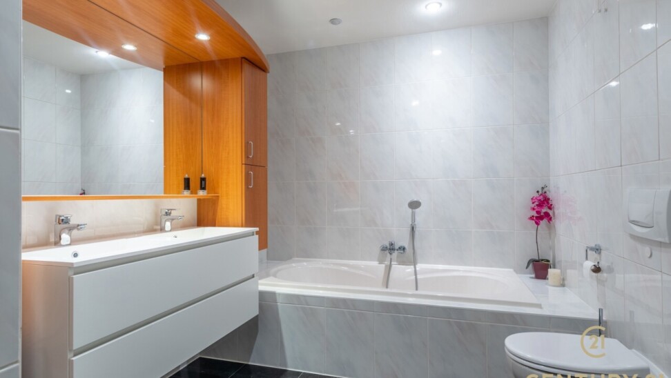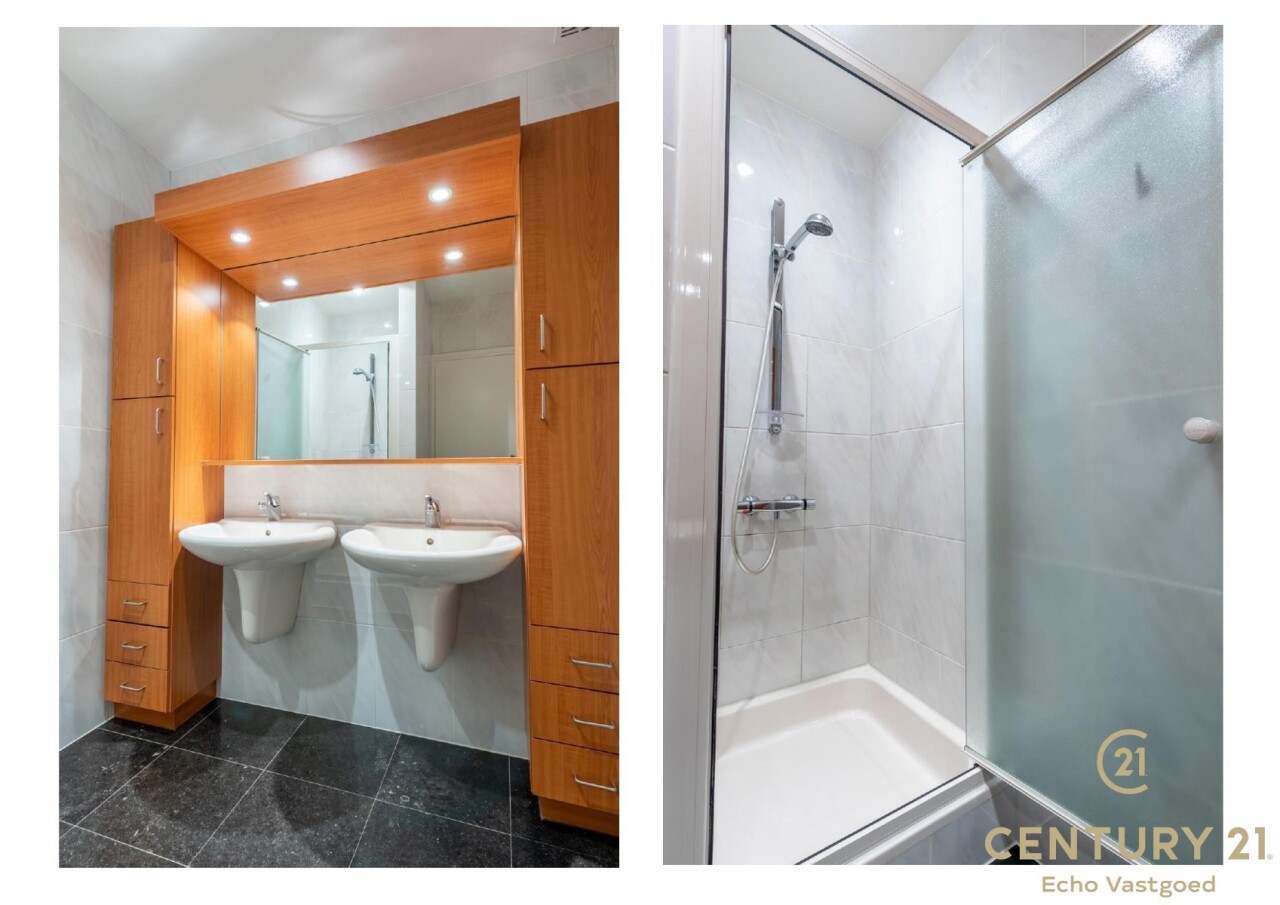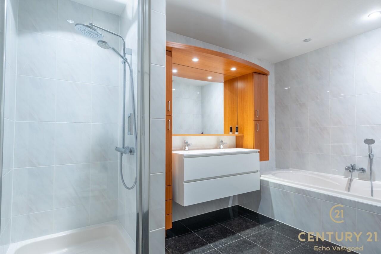 Het appartement beschikt over drie volwaardige slaapkamers, waarvan twee met praktische ingemaakte kasten. De master bedroom heeft directe toegang tot de luxueuze badkamer, uitgerust met een ligbad, inloopdouche en dubbele wastafel.