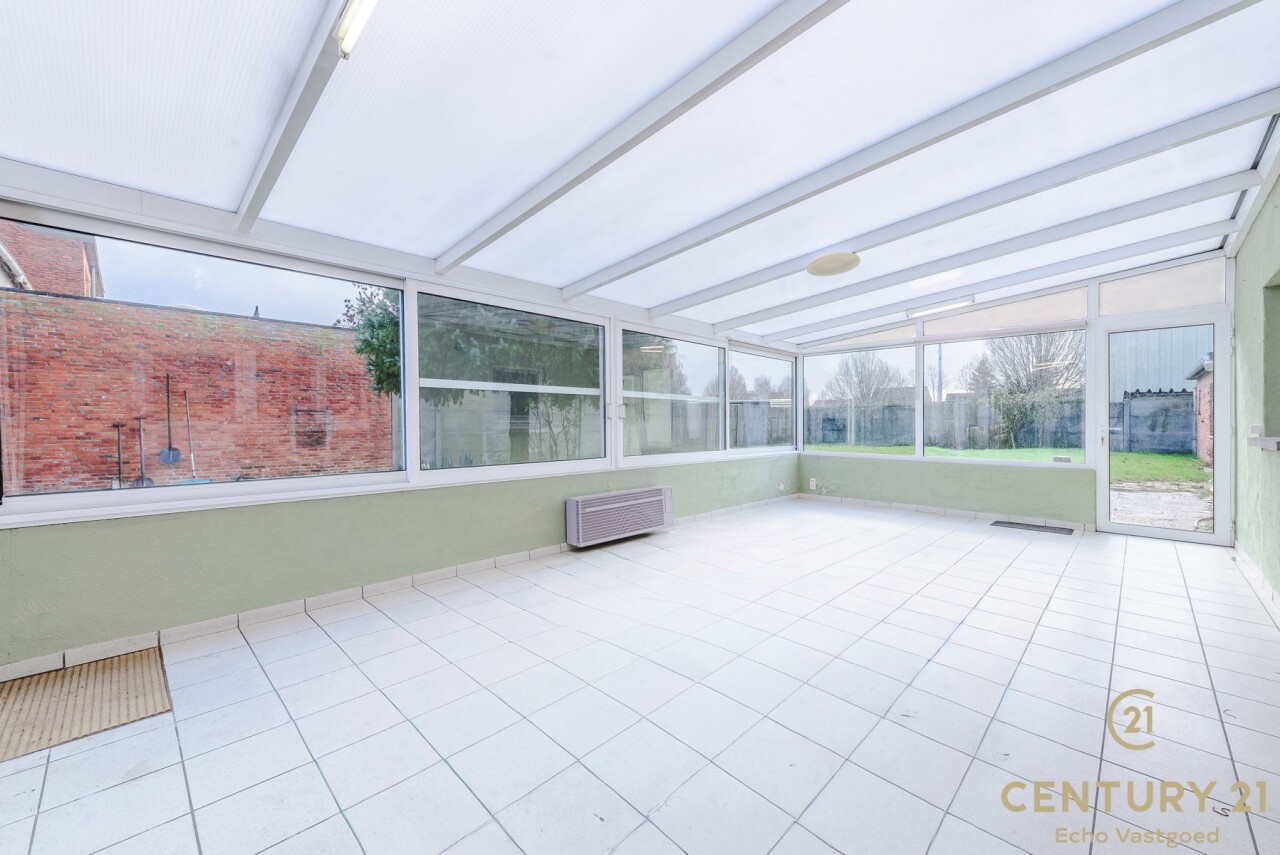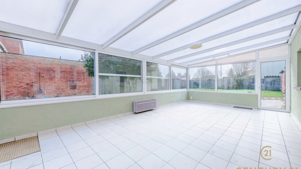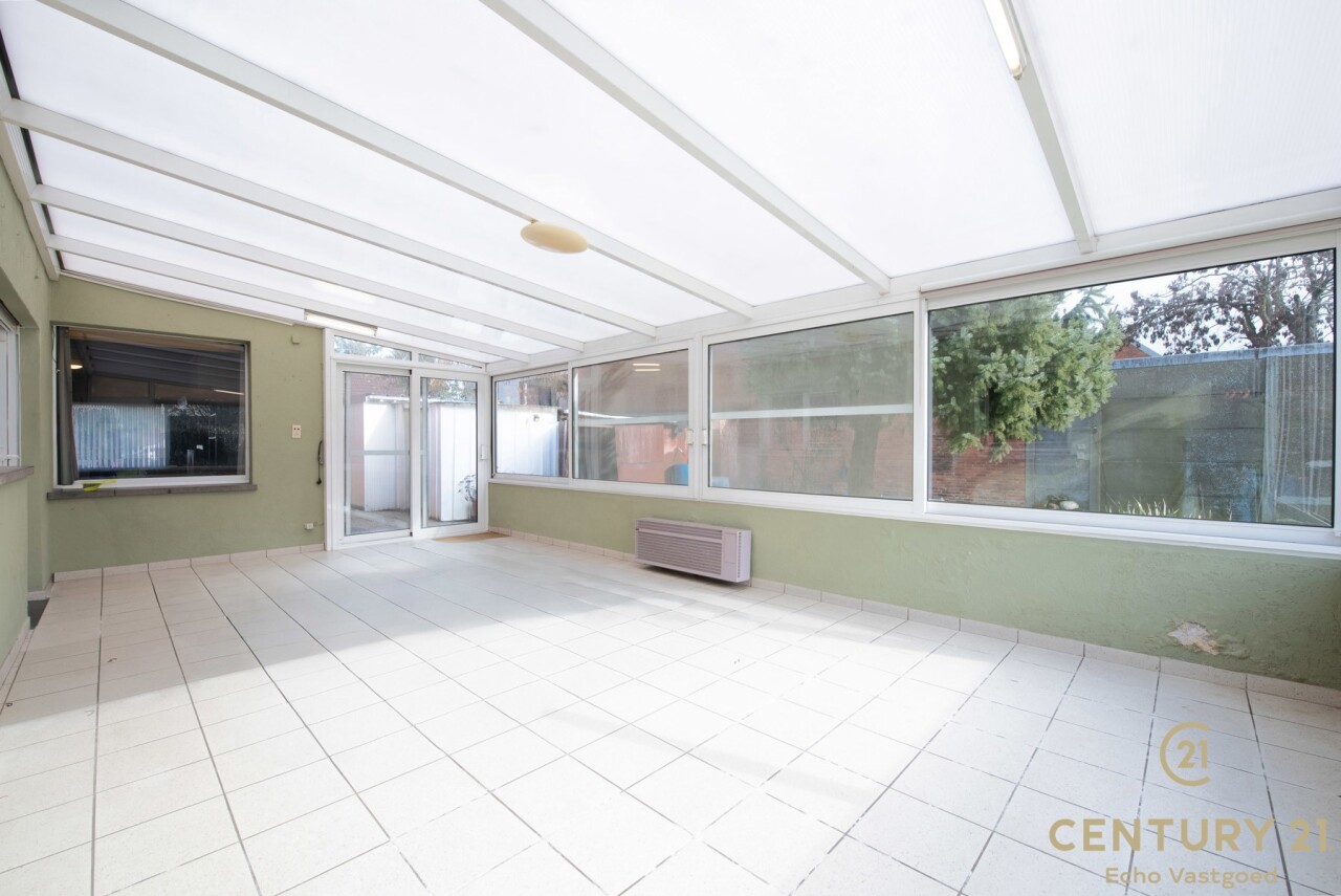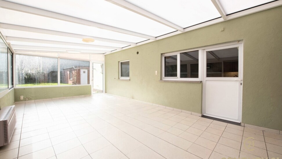 We betreden de woning via de inkomhal, die uitkomt in de ruime leefruimte met zit- en eethoek. Dankzij de grote raampartijen geniet deze ruimte van veel natuurlijke lichtinval. Aansluitend bevindt zich de keuken, die toegang biedt tot de badkamer, het apart toilet en een ruime berging/wasplaats. Vanuit de keuken bereikt u bovendien de indrukwekkende veranda van maar liefst 29 m² – een heerlijke plek met zicht op de groene tuin, waar u in alle rust kan genieten van elk seizoen.