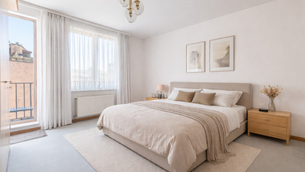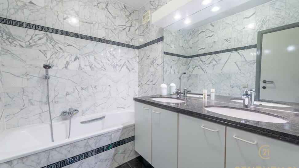 Het appartement beschikt over drie volwaardige slaapkamers en twee badkamers, waarvan één met directe toegang vanuit de hoofdslaapkamer – ideaal voor comfort en privacy.